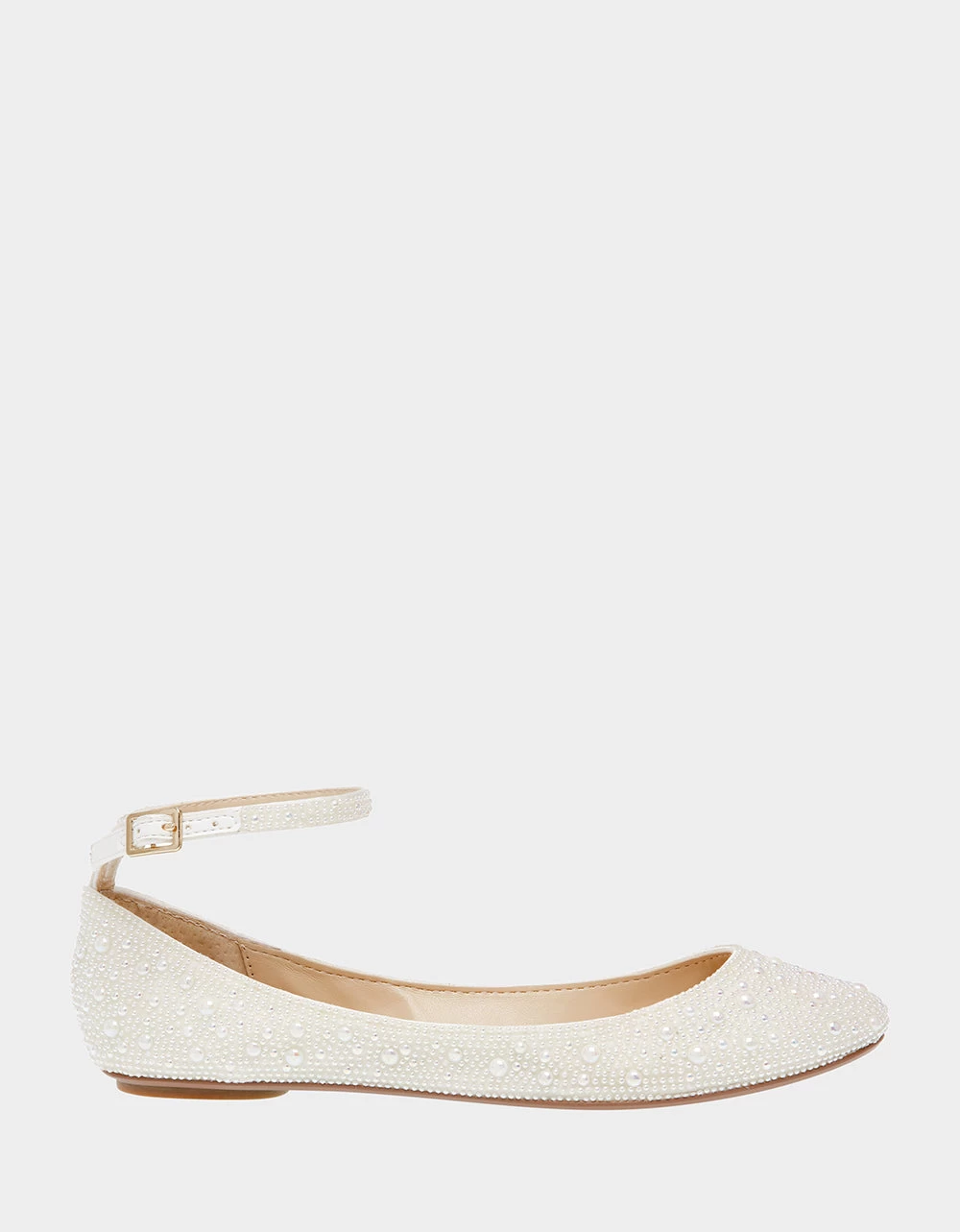 Say “I do” (in style) with ACE IVORY! Our pearl-encrusted bridal ballet flats will give your wedding day look a touch of glitz. Comfortably elevate your style without compromising on your special day! The ankle strap adds a touch of sophistication and ensures a secure fit for all-day comfort. Perfect for any special occasion or adding some sparkle to your everyday look.