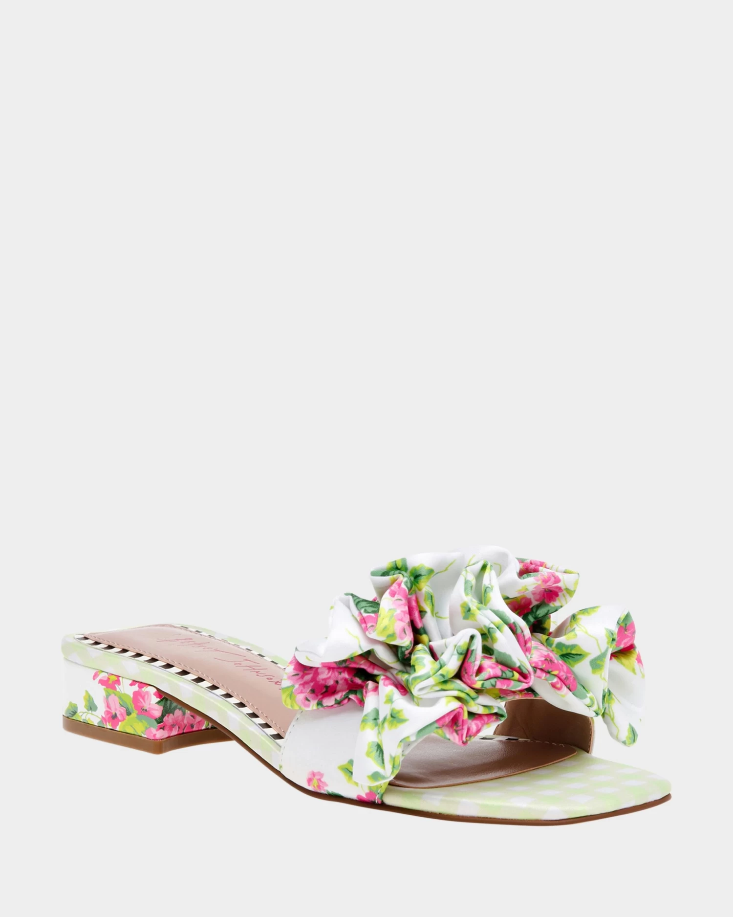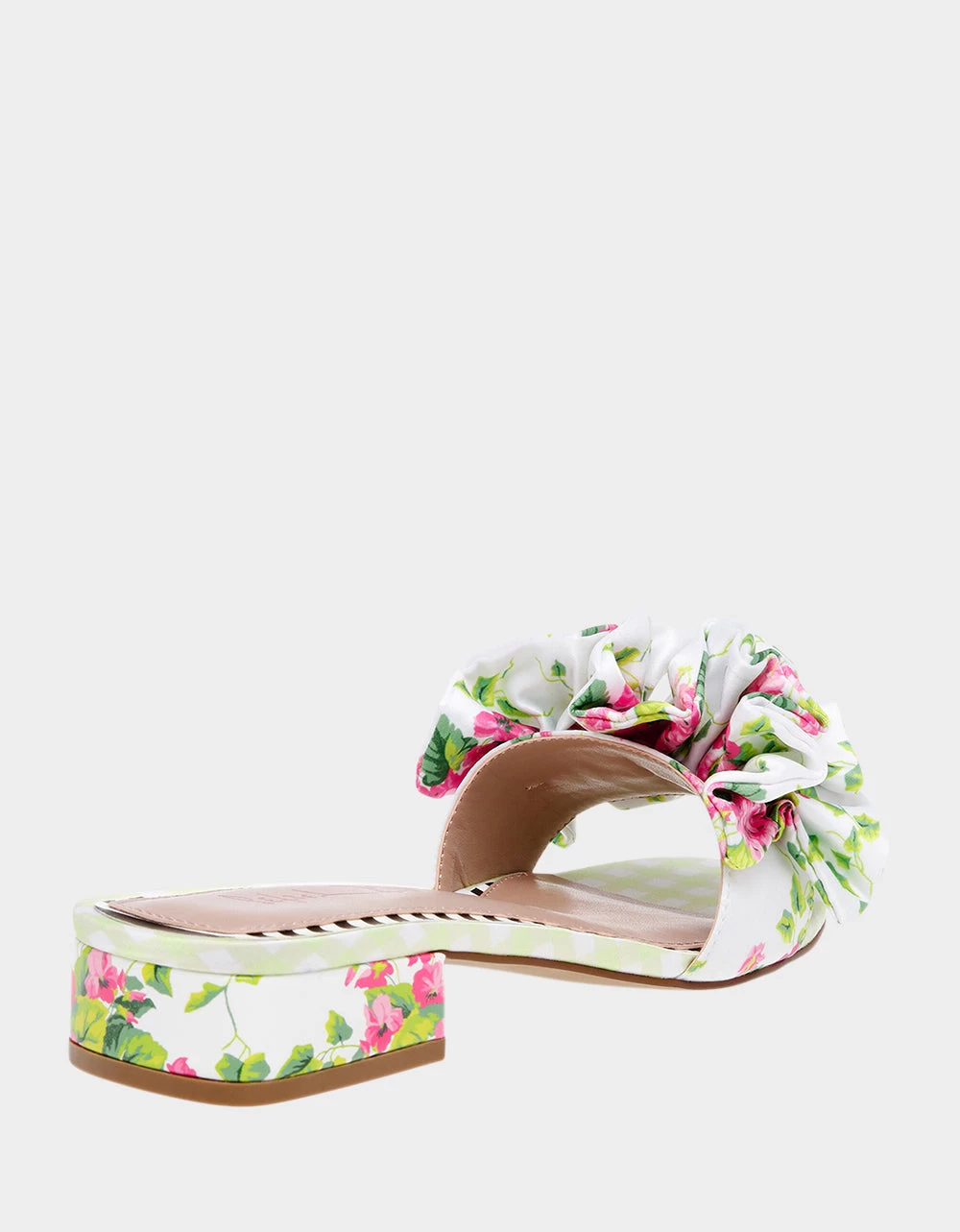 Introducing our stunning ALIVIA floral ruffle sandal, the perfect accessory to add a touch of femininity and elegance to your outfit! this sandal features a beautiful floral pattern that is both playful and stylish, while the ruffled strap adds a touch of romance and charm.