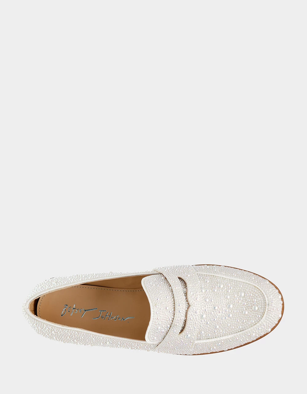 Be dazzled in the ARON all-over pearl embellished loafer. These luxurious shoes feature a classic penny loafer silhouette, adorned with shimmering rhinestones for a touch of glamour.