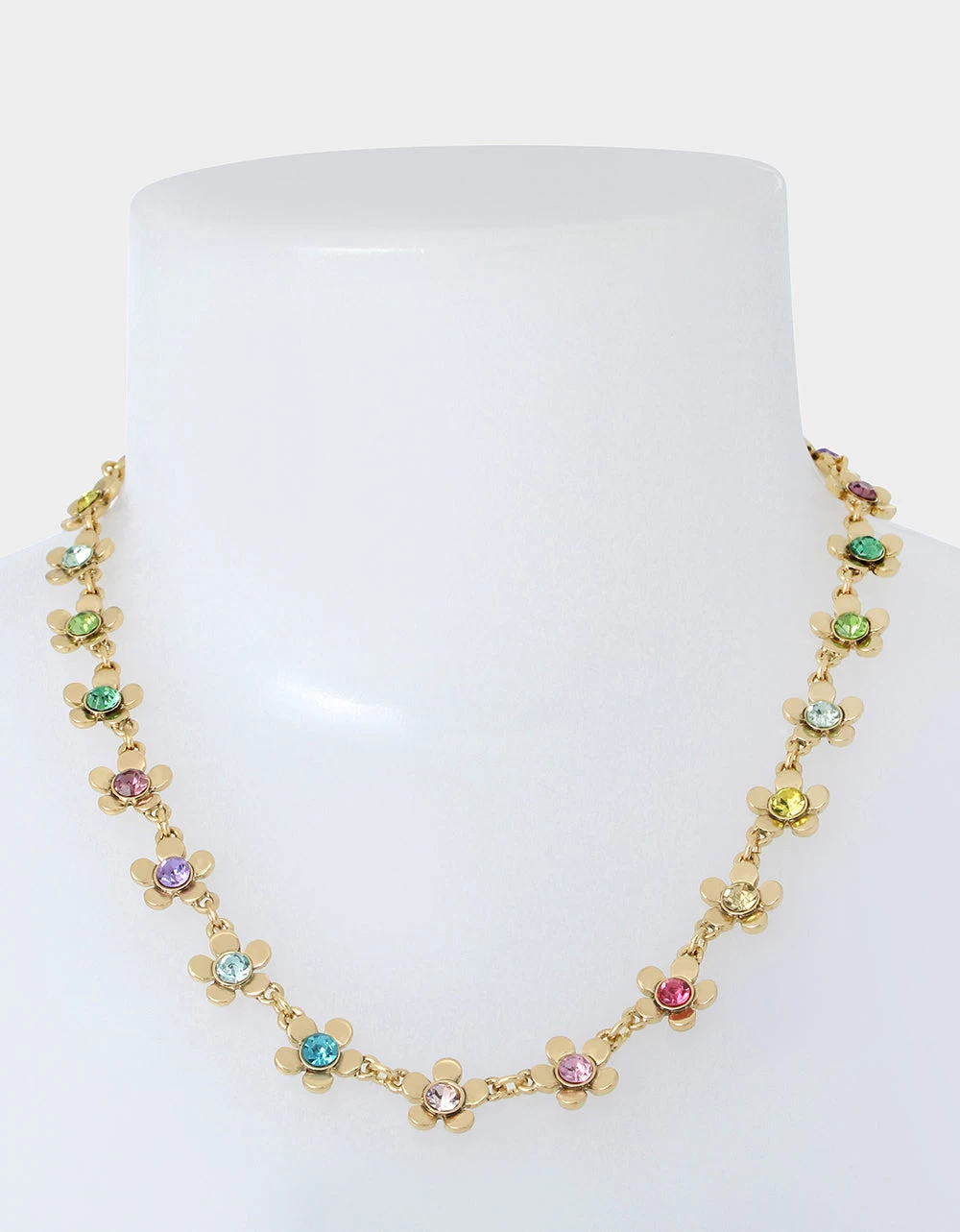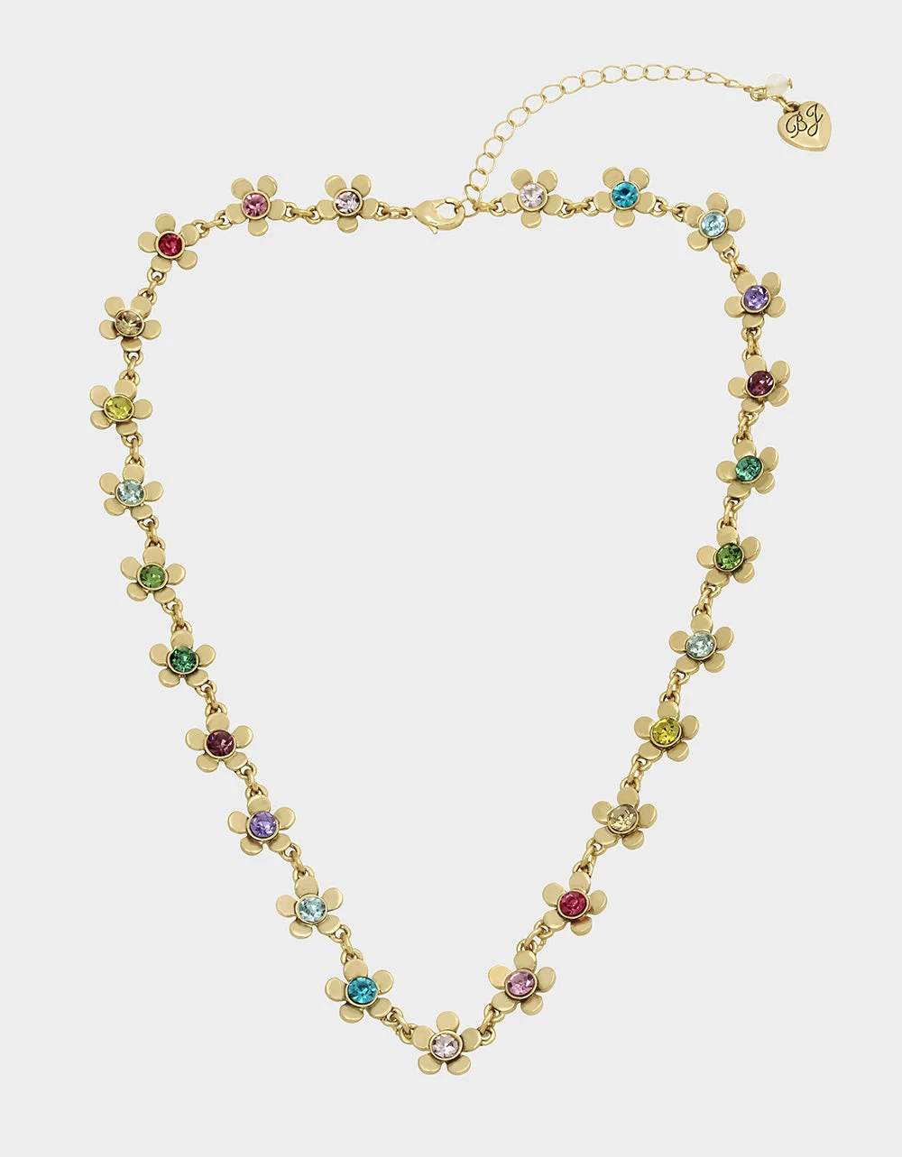 BETSEY LOVE FEST STONE FLOWER COLLAR NECKLACE PASTEL MULTI