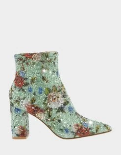The CADY is a flirty floral bootie that will take any outfit you wear to the next level. These ankle boots feature a pointed toe and a study, block heel and are fully decked out with rhinestones. Glitz and glam have never looked better.