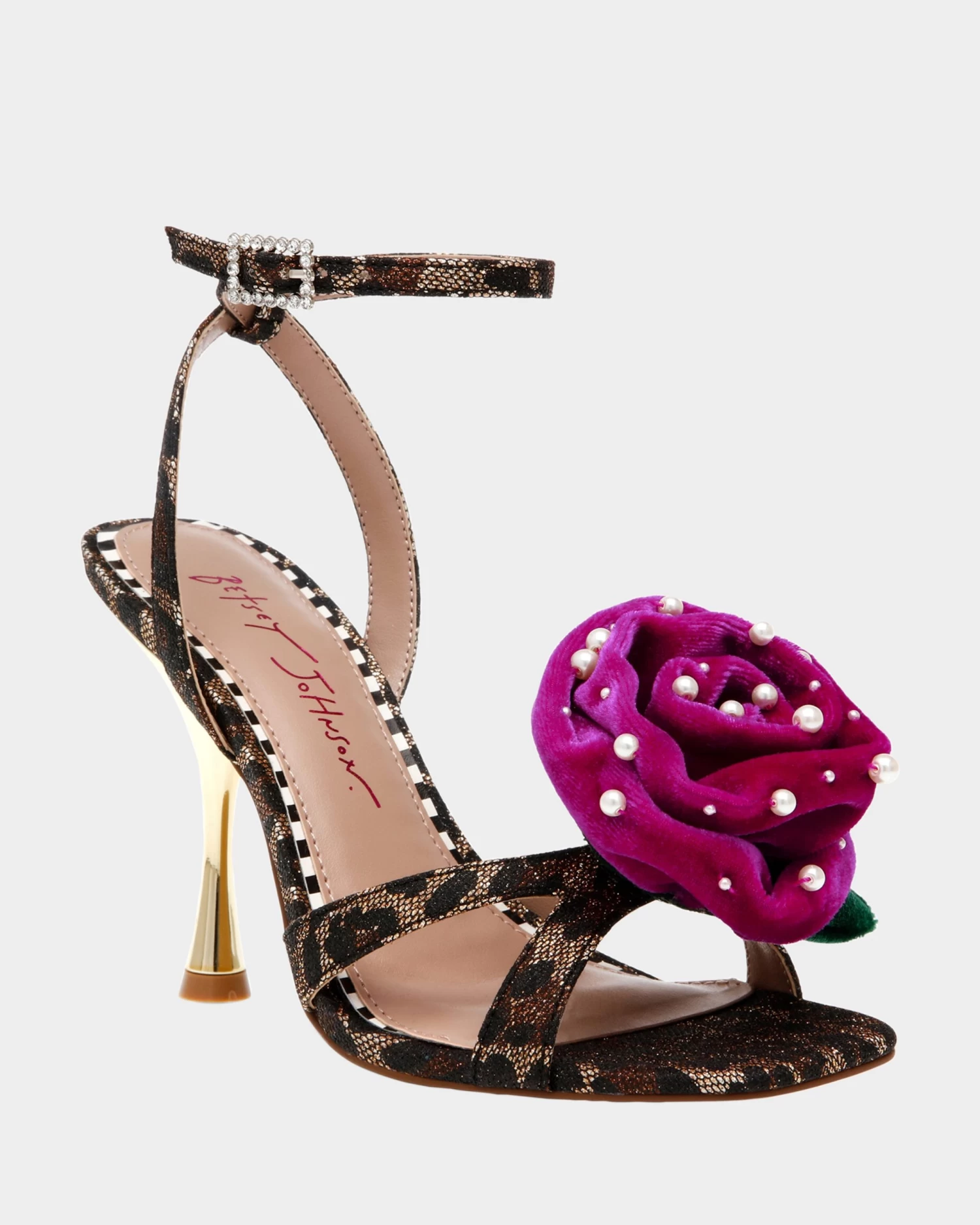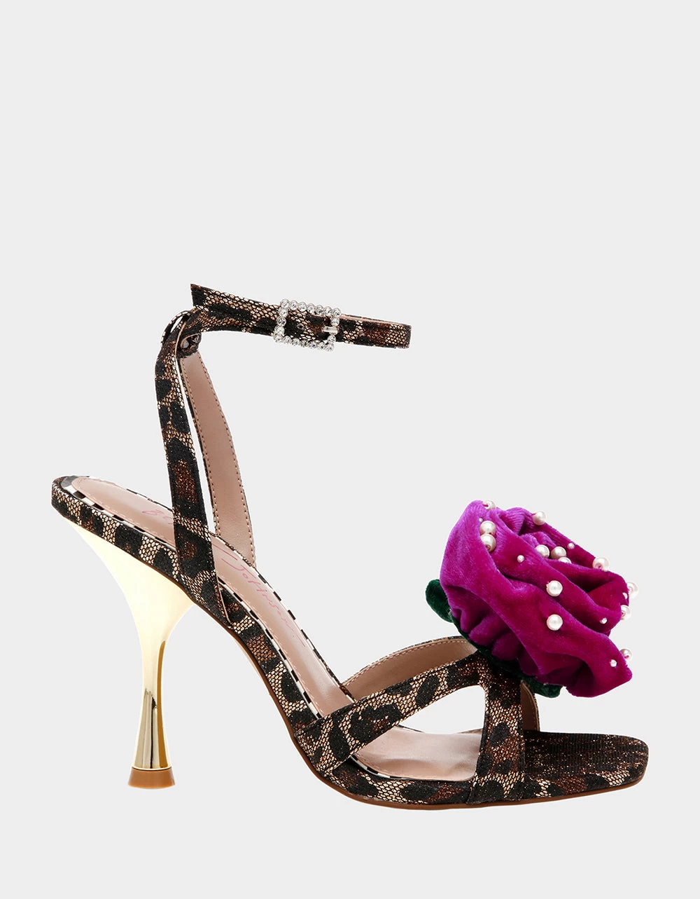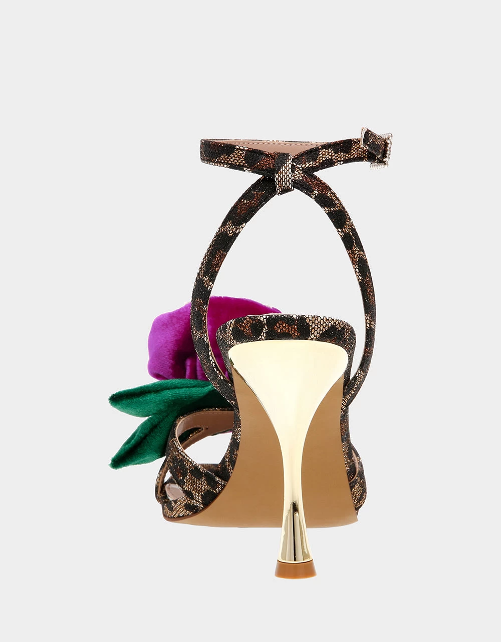 Will you accept this rose!? The CARLOS LEOPARD MULTI rose embellished heel is a flirty and romantic take that makes it the perfect evening shoe. Its bold design is guaranteed to make you fall in love!