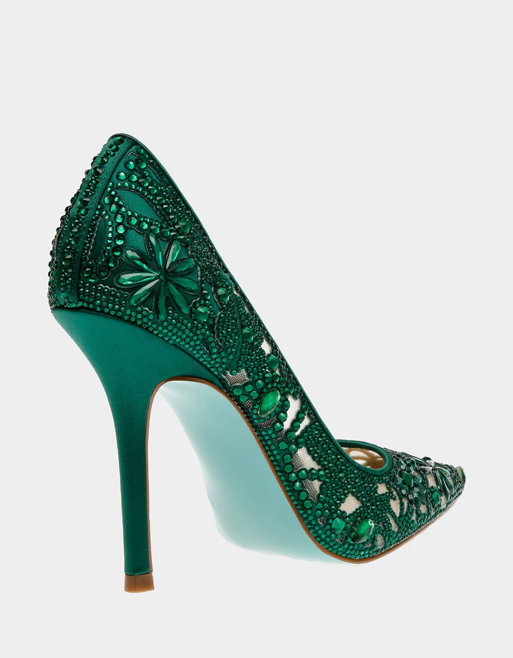 Step out in style in the CHIC patterned stone heel! Its pointed-toe and unique chop-out rhinestone design is embellished over sheer nude mesh providing a classic and sultry look.Â