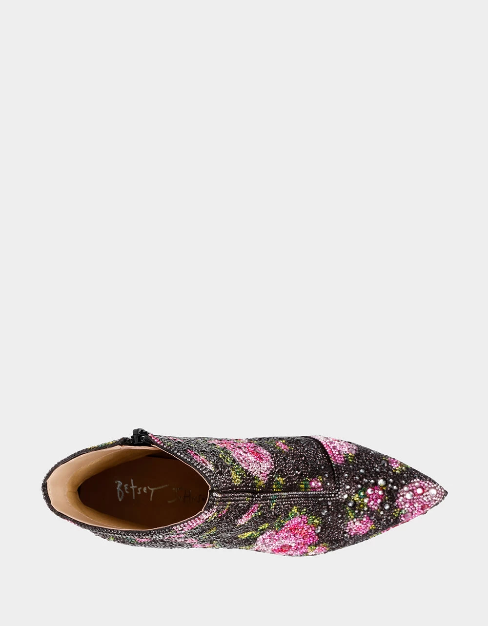 Make a statement with the sparkly DELLA all-over rhinestone platform booties. These stunning booties feature an all-over sparkly design with a classic Betsey Blue bottom for a touch of glam.