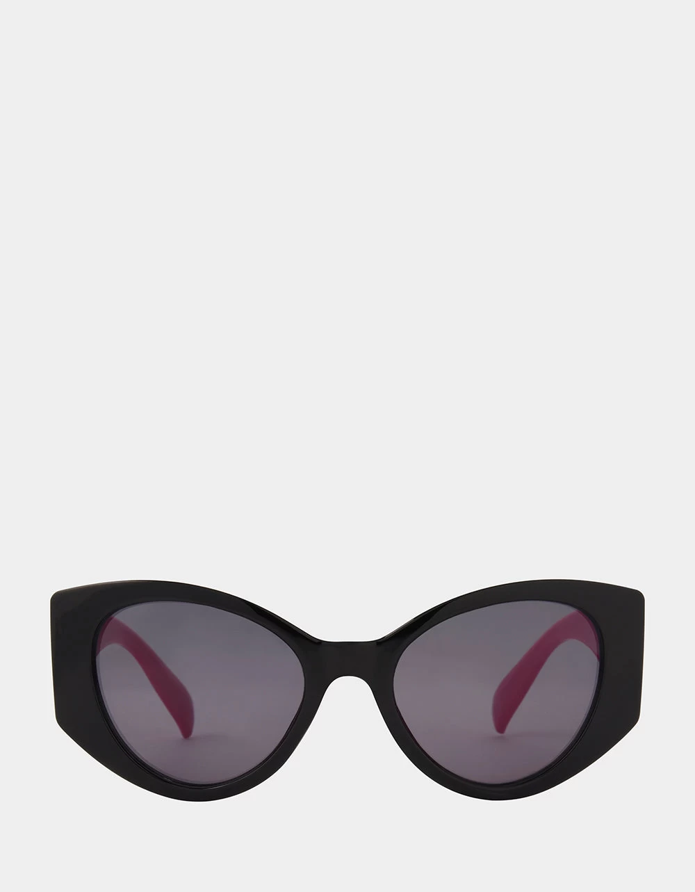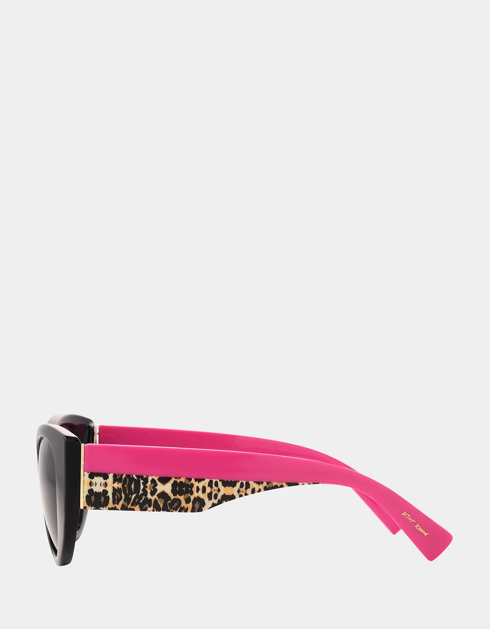 The “purr-fect” selection for your eyewear collection, the Betsey Johnson® DOUBLE TAKE Ladies sunglasses have black, cateye-style frames made from plastic, with whimsical pink and leopard detailing on the temples. The smoke lenses offer 100% UVA/UVB lens protection, and are scratch and impact resistant.