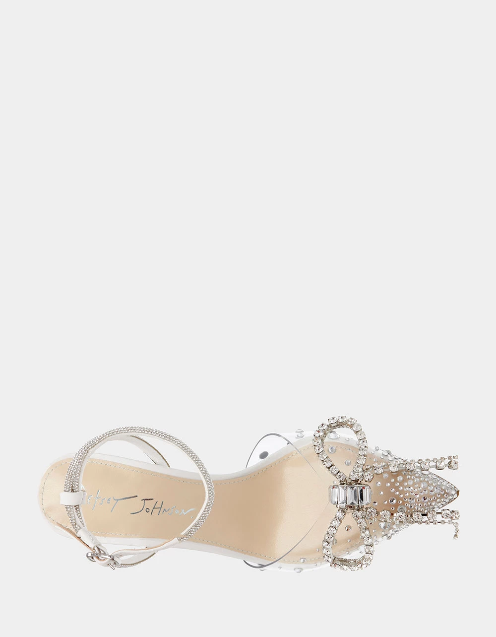 - Transparent synthetic upper with rhinestone bow