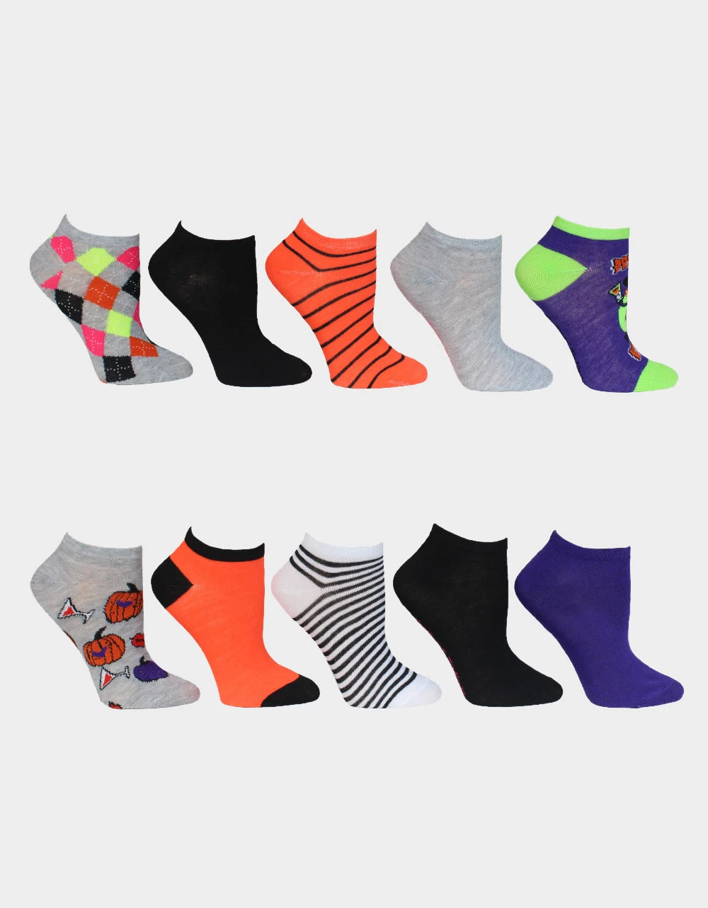 Dress up your feet for Halloween with this 10 pack of orange DRINK WITCHES LOW CUT socks! With a playful witch and pumpkin design, these creepy-cute socks are sure to be a scream on fright night!Â