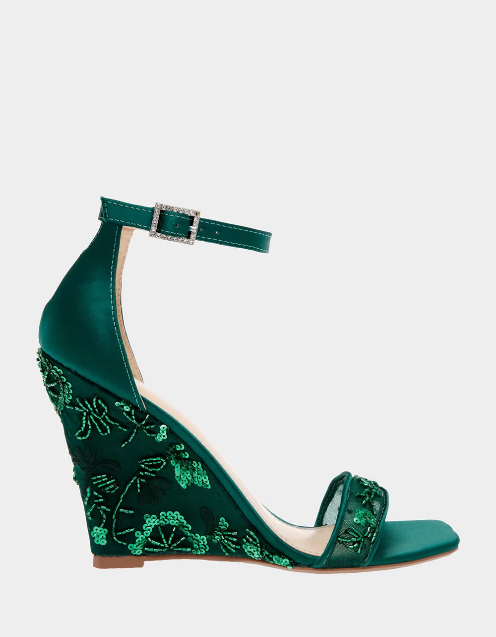 Shine like the gem you are with the IVAN wedge heel! Featuring pretty floral detailing, adding a bit of playful flair to your stylin’ look. The perfect height for a night out, you’ll stay comfy and chic with its walkable heel! Let your feet flower with this eye-catching shoe.