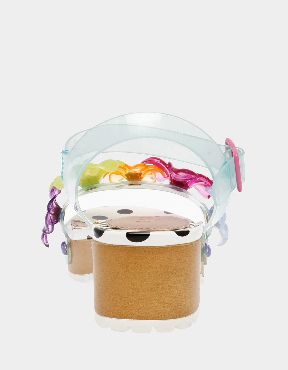 Charm up your younger one’s style with our stunning FLRYN floral sandals. The transparent floral straps add a whimsy playful touch that can be worn for every occasion.