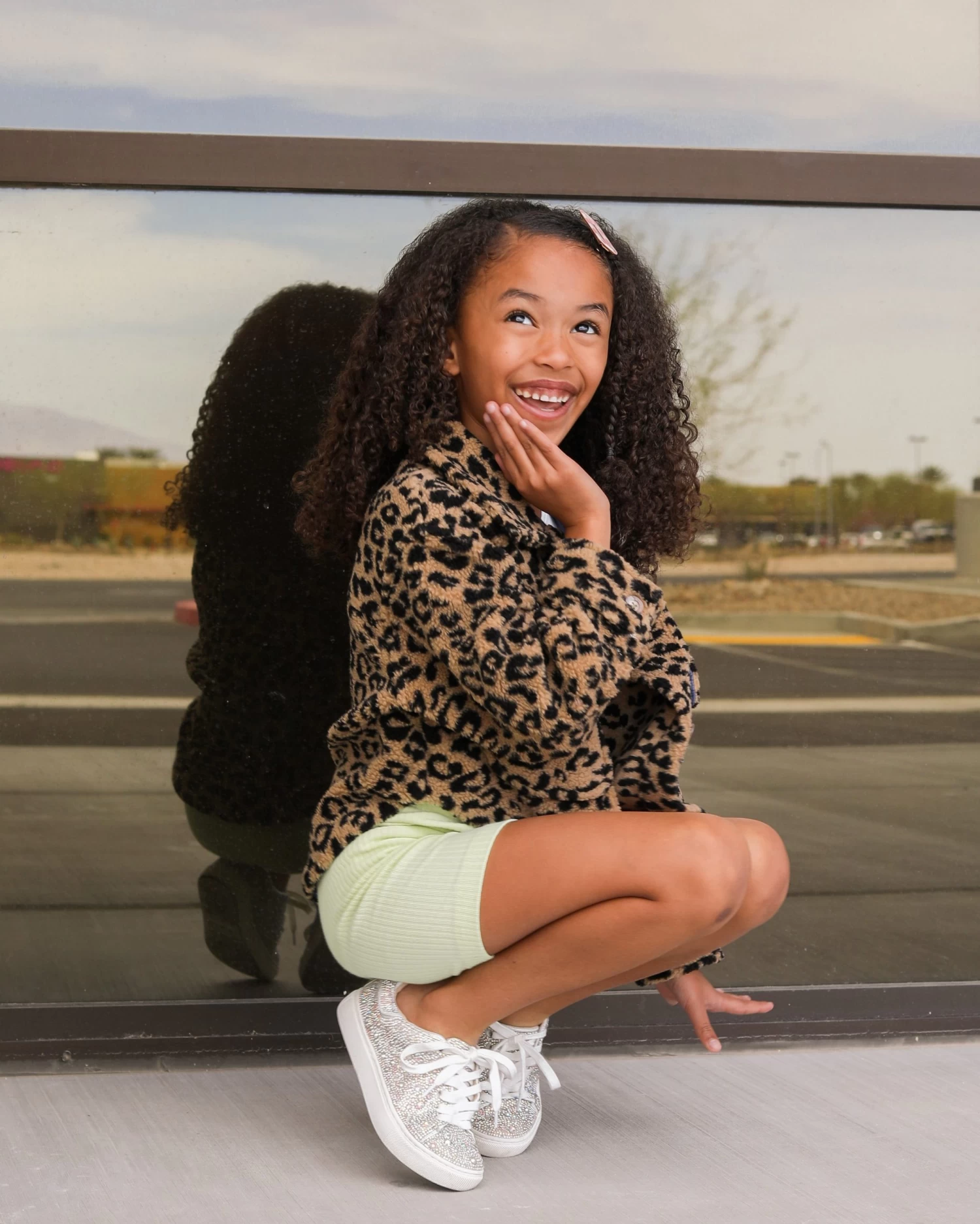 Put a sparkle in your little one’s steps with the Sidny all-over rhinestone sneakers. The Sidny is available in a variety of colors and matching adult sizes to make it a match.