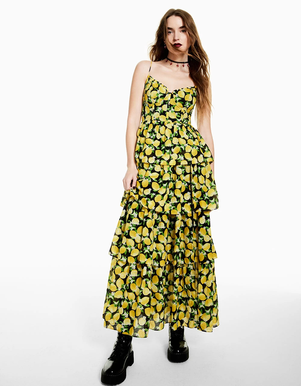Show off your bright personality in the playful LA LA LEMONS MAXI DRESS! This lemon-printed maxi dress features delightful ruffles with a side-leg slit that will have you looking zesty on your next sunny day.Â