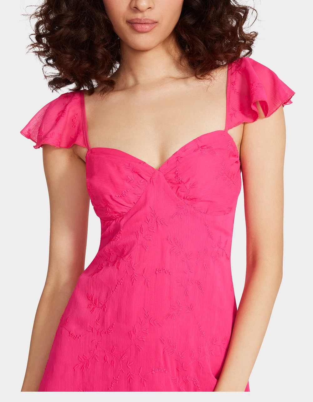 The Lotus Mini Dress features a stylish silhouette with shoulder sleeves and a breathable floral detail mesh fabric. Perfect for the warm weather, this dress is ideal for any occasion.