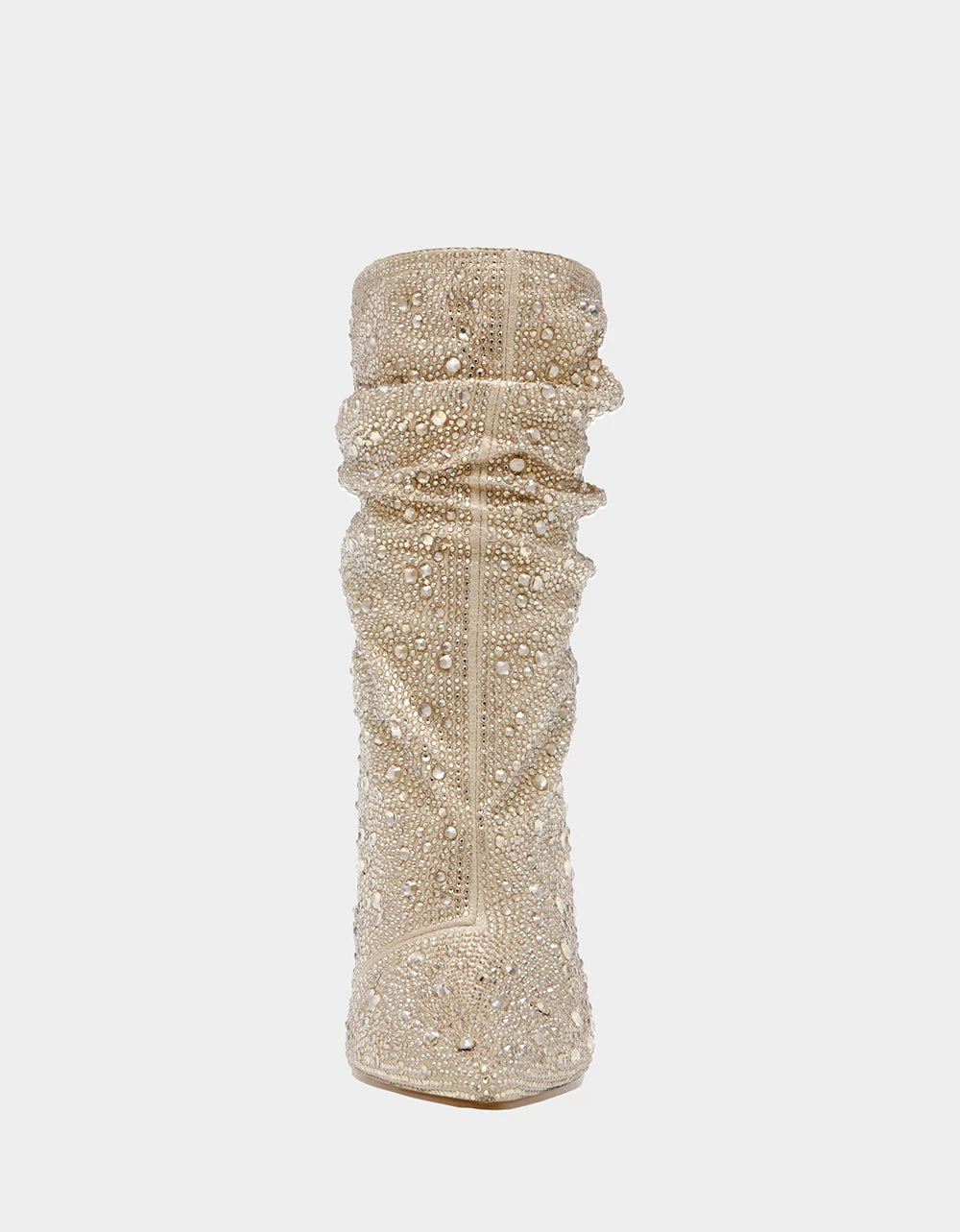 Fall in love with these cozy MAC slouched booties! Embellished with shiny rhinestones, they add a touch of sparkle to any look. Ready to strut your stuff? These easy slip-ons make it super quick and easy.Â