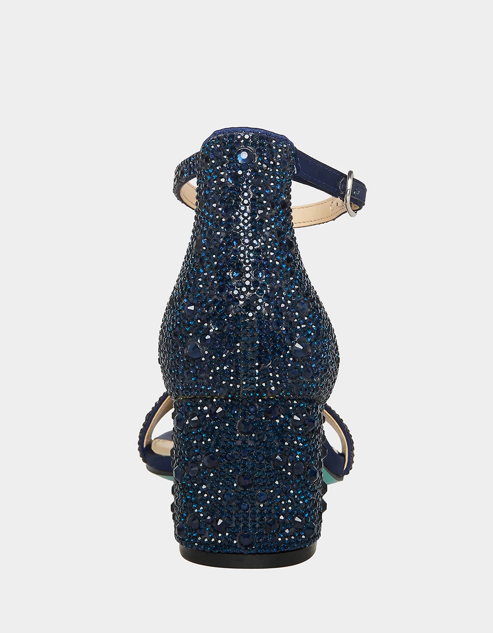 The sparkly MARI heel is a flirty open-toed sandal glistening all over with rhinestone embellishments. These sparkly block heels are ideal for any formal occasion or a night out on the town. The sleek mid-low short kitten heels feature a comfortable and stable block heel with an adjustable ankle strap that will keep you dancing all night long.