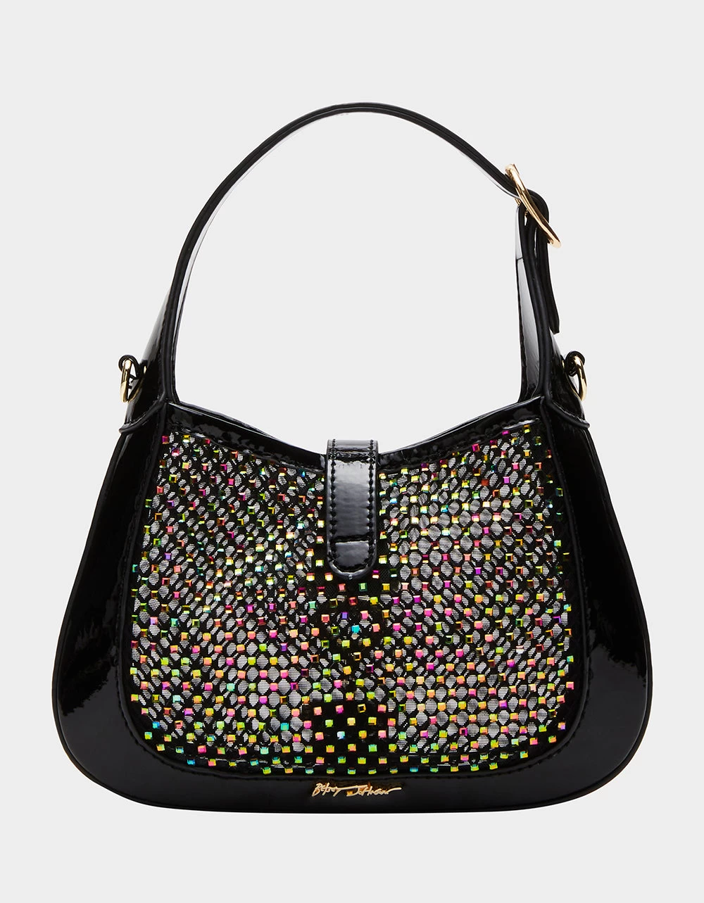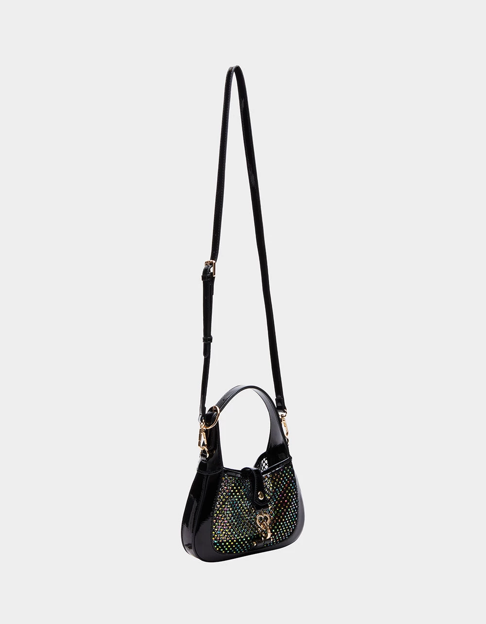 Be stylish and glam in our MESH MINI BAG BLACK. This sparkling rhinestone mini bag is sure to make heads turn with its glitzy yet subtle design! Perfect for special occasions and ready to add dazzle to your outfit.Â