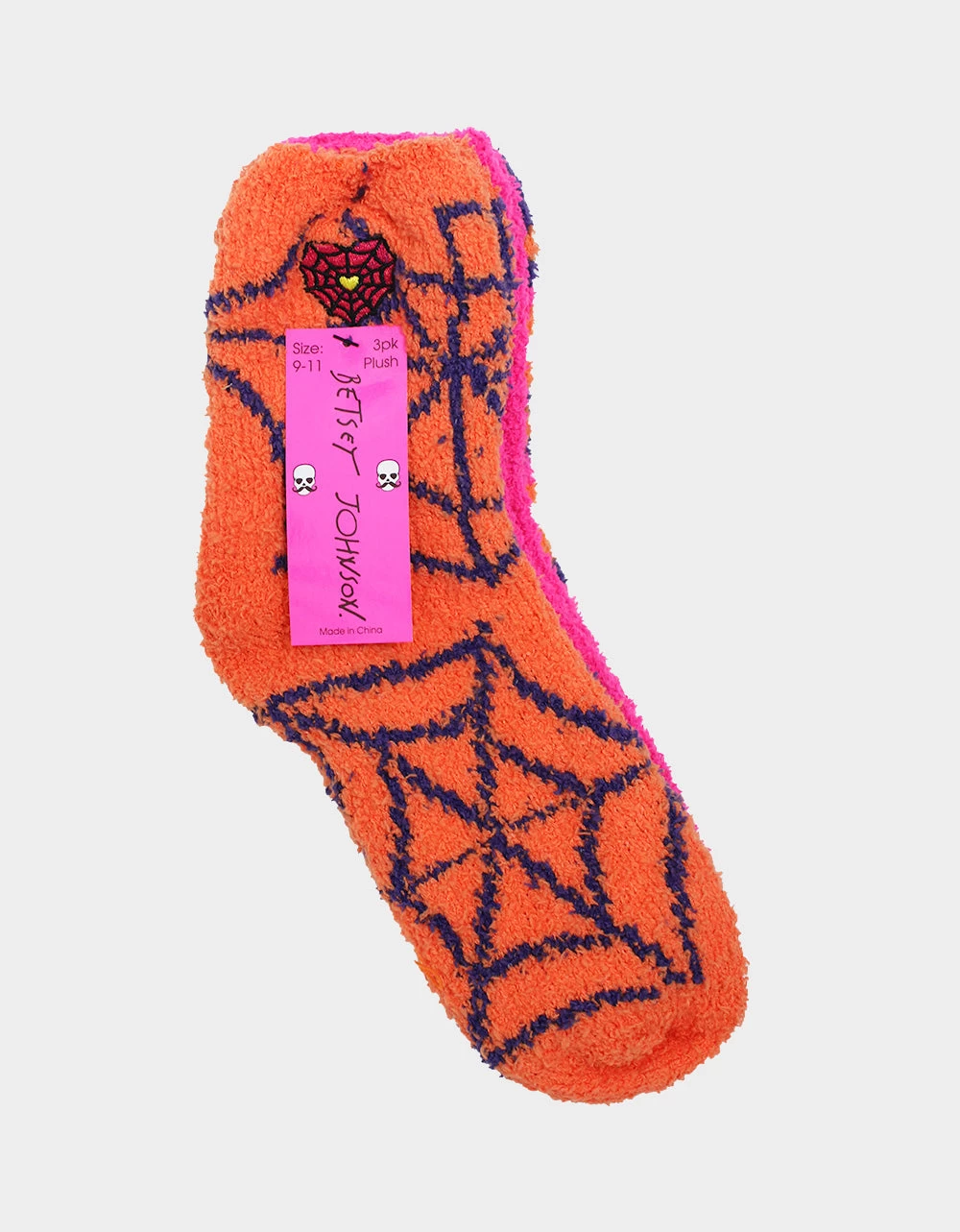 Bring a little pinch of fun to your sock drawer with our Plush Spider Print Three Pack Socks! These fuzzy socks feature an orange and black spider web print that’s sure to spook up any outfit.Â