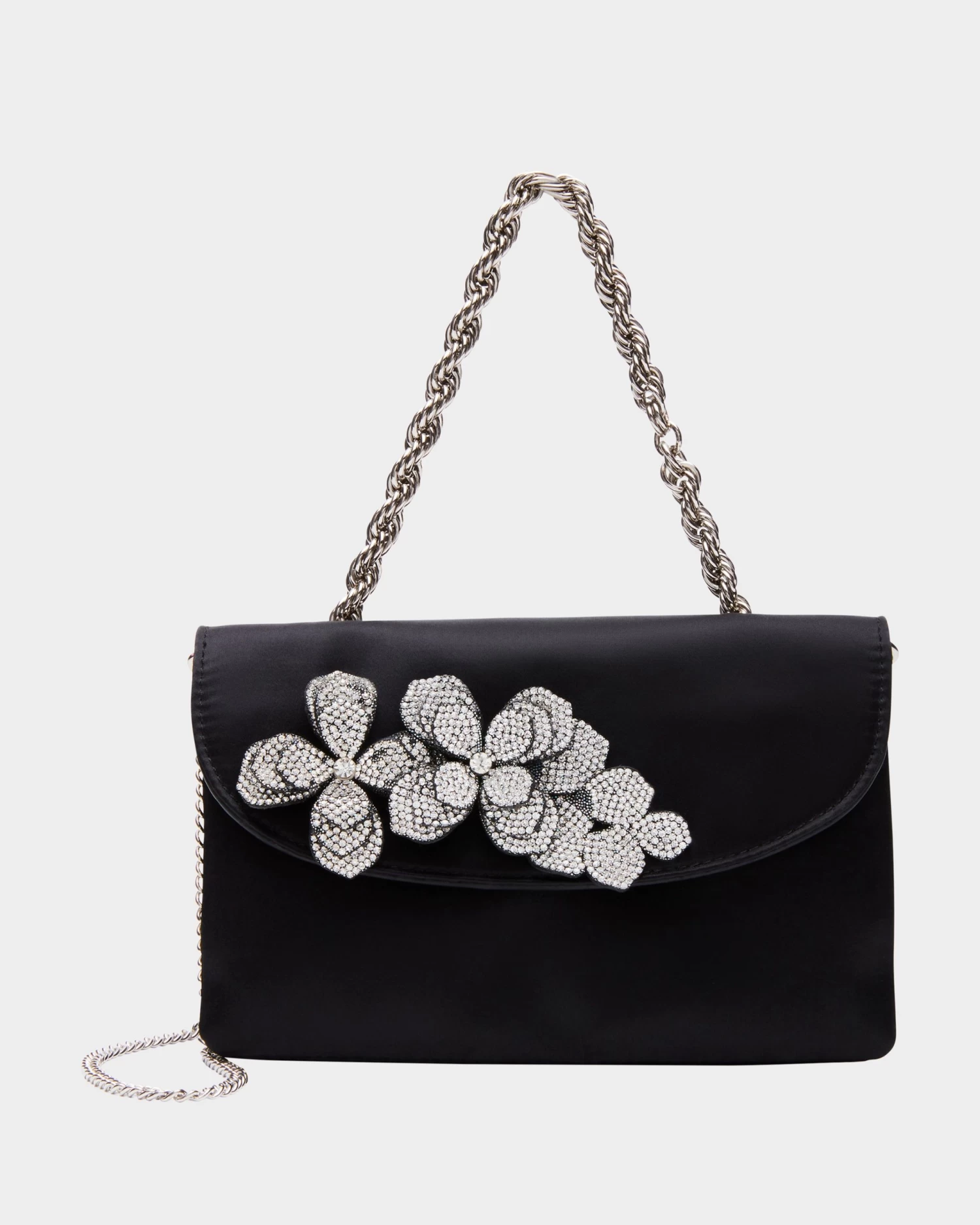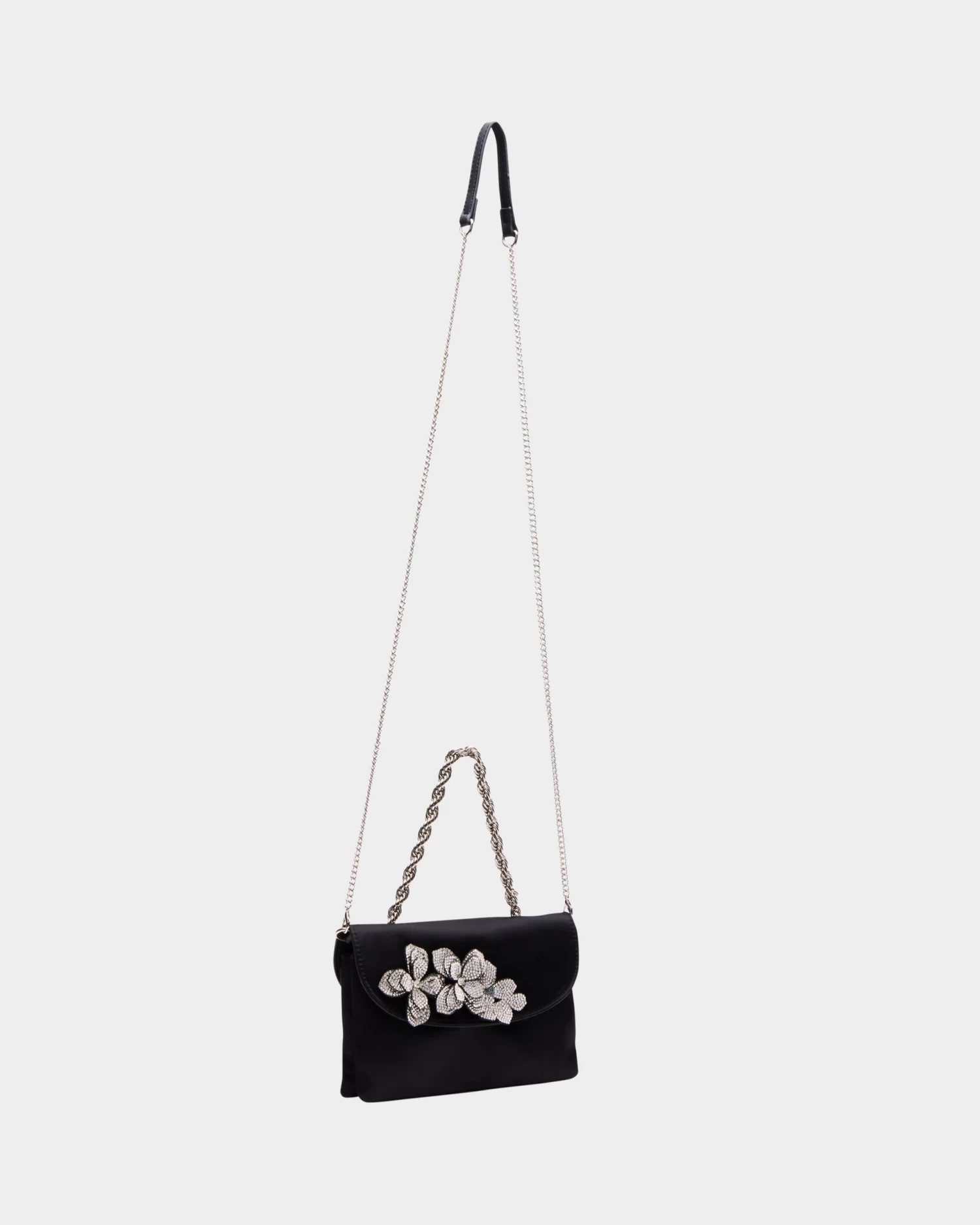 Make a formal fashion statement with this chic floral crossbody bag! With a glamorous rhinestone flower detail, you’ll be sure to stand out in the crowd and sparkle wherever you go. Put some petal power in your look today and add this beauty to your collection!