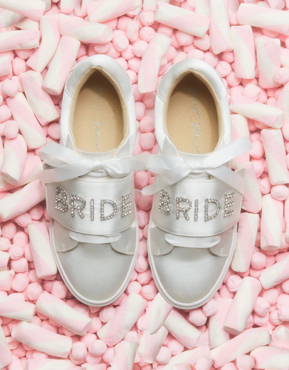 - Textile satin upper with “Bride” embellished in rhinestones