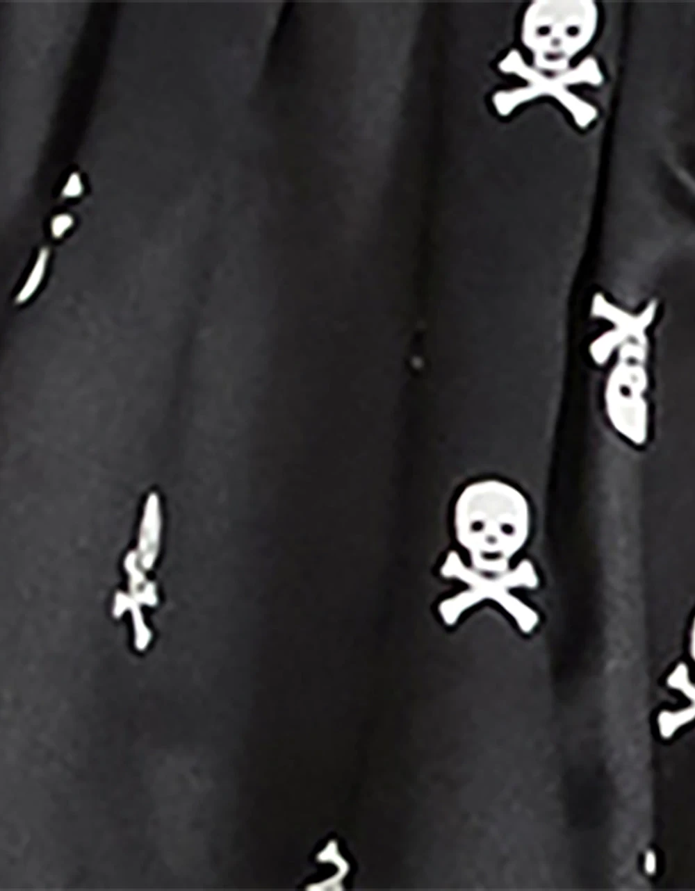 Introducing our SKULLTASTIC ROMPER – a perfect blend of edginess and charm. Crafted to resemble a flirty mini dress, this skull pattern romper features a flattering bustier silhouette and flared-out shorts that accentuate your curves.