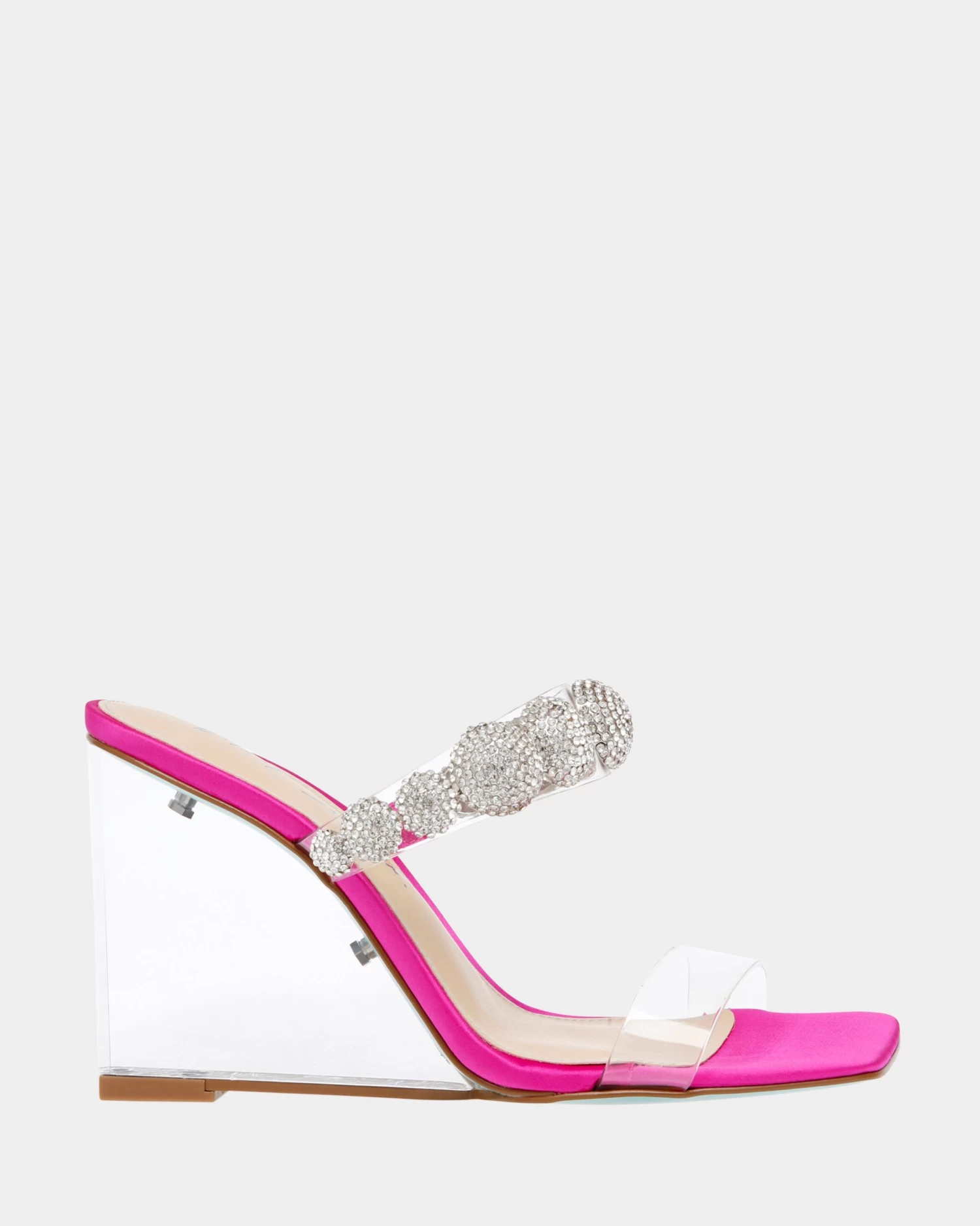 Create an illusion of height with the translucent wedge heel that adds sophistication and elegance to your look. The rhinestone embellishments will add a luxurious touch to your outfit, making it the perfect choice for a night out, a wedding, or any special occasion.
